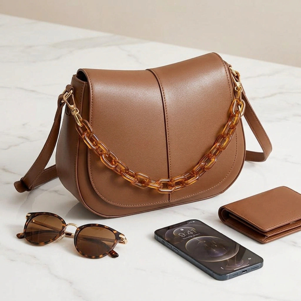 Our BeauToday Genuine Leather Shoulder Handbag combines premium craftsmanship with a bold, modern design, standing out from ordinary bags with its luxurious feel and unique acrylic chain.
